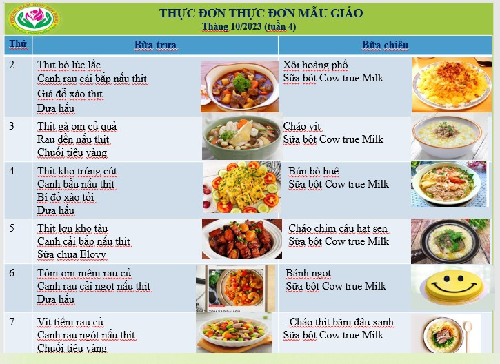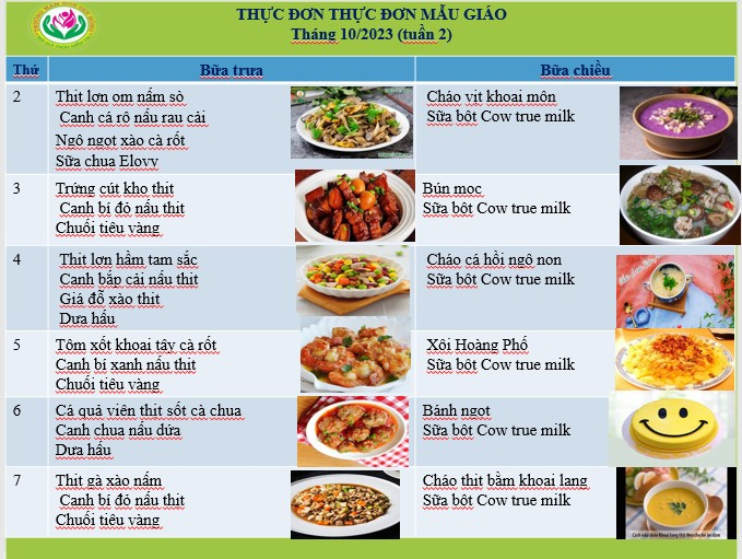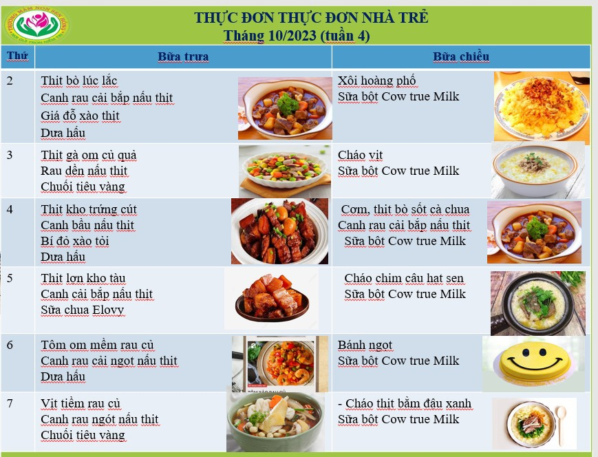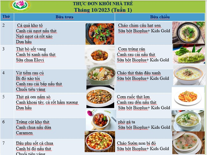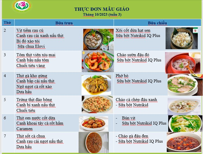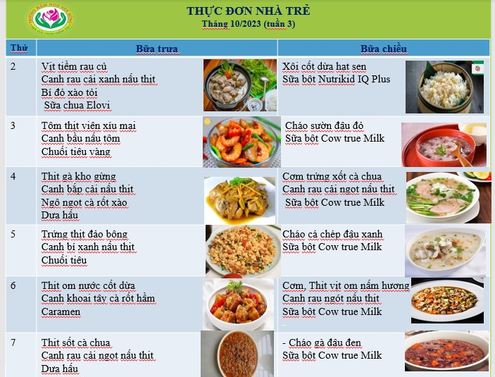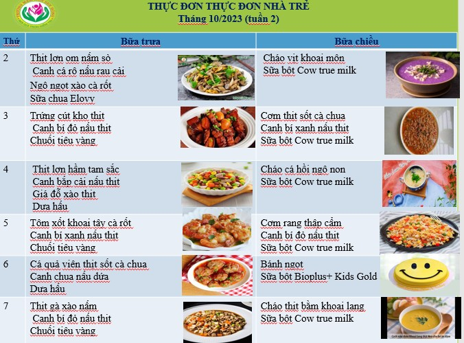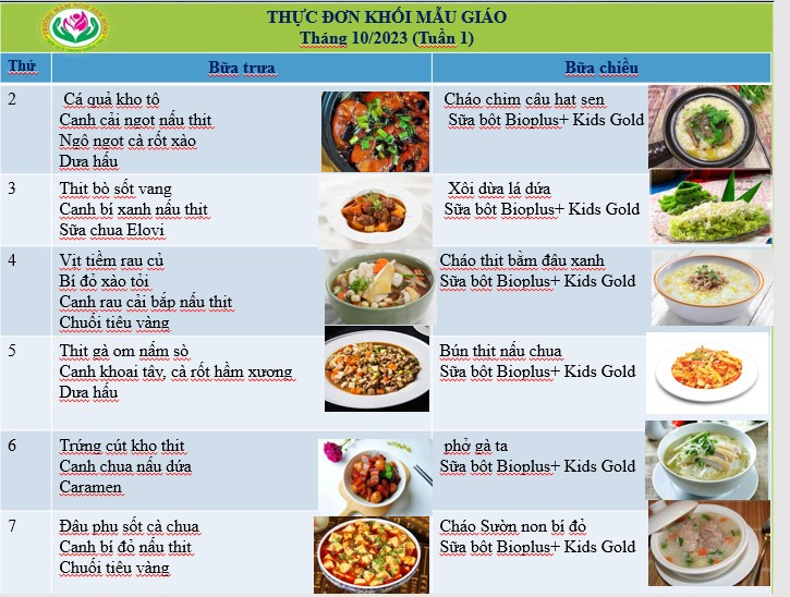 Thực đơn tháng 10/2023 trường Mầm non Sen Hồng