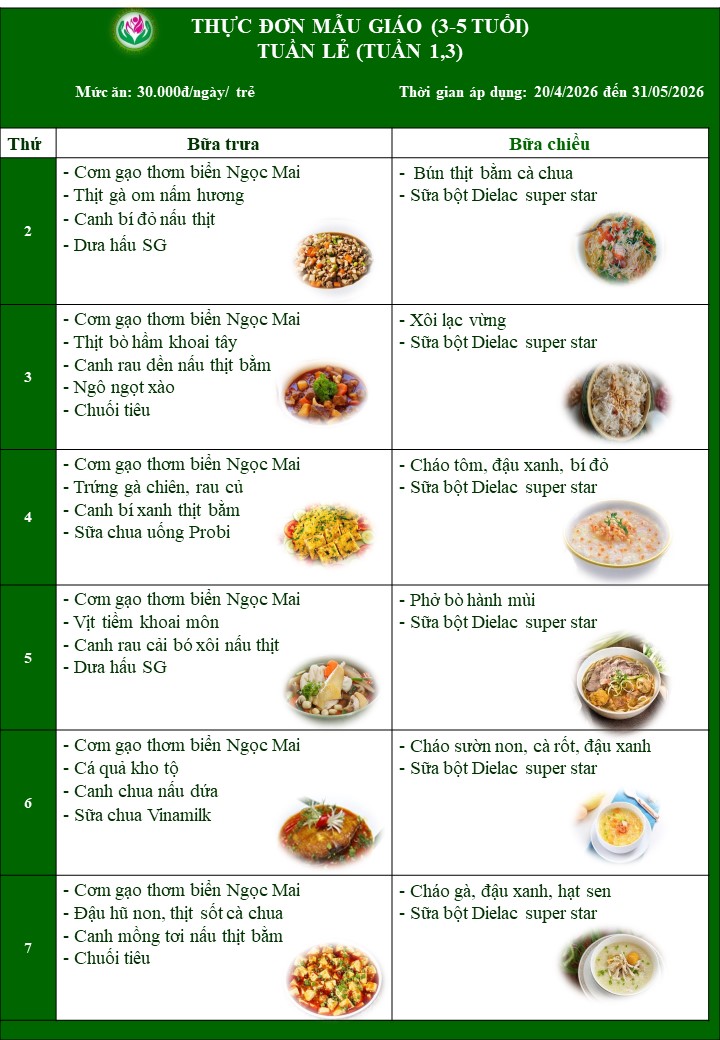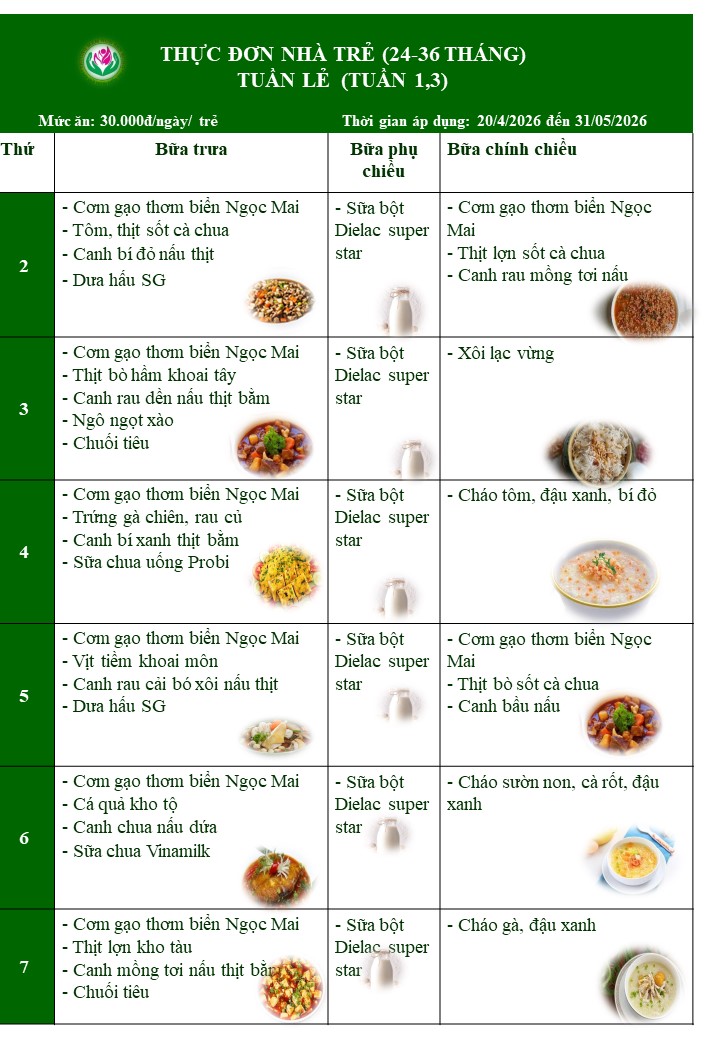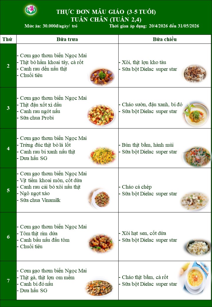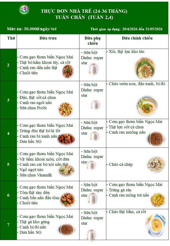 THỰC ĐƠN THÁNG 4 VÀ THÁNG 5 NĂM 2026