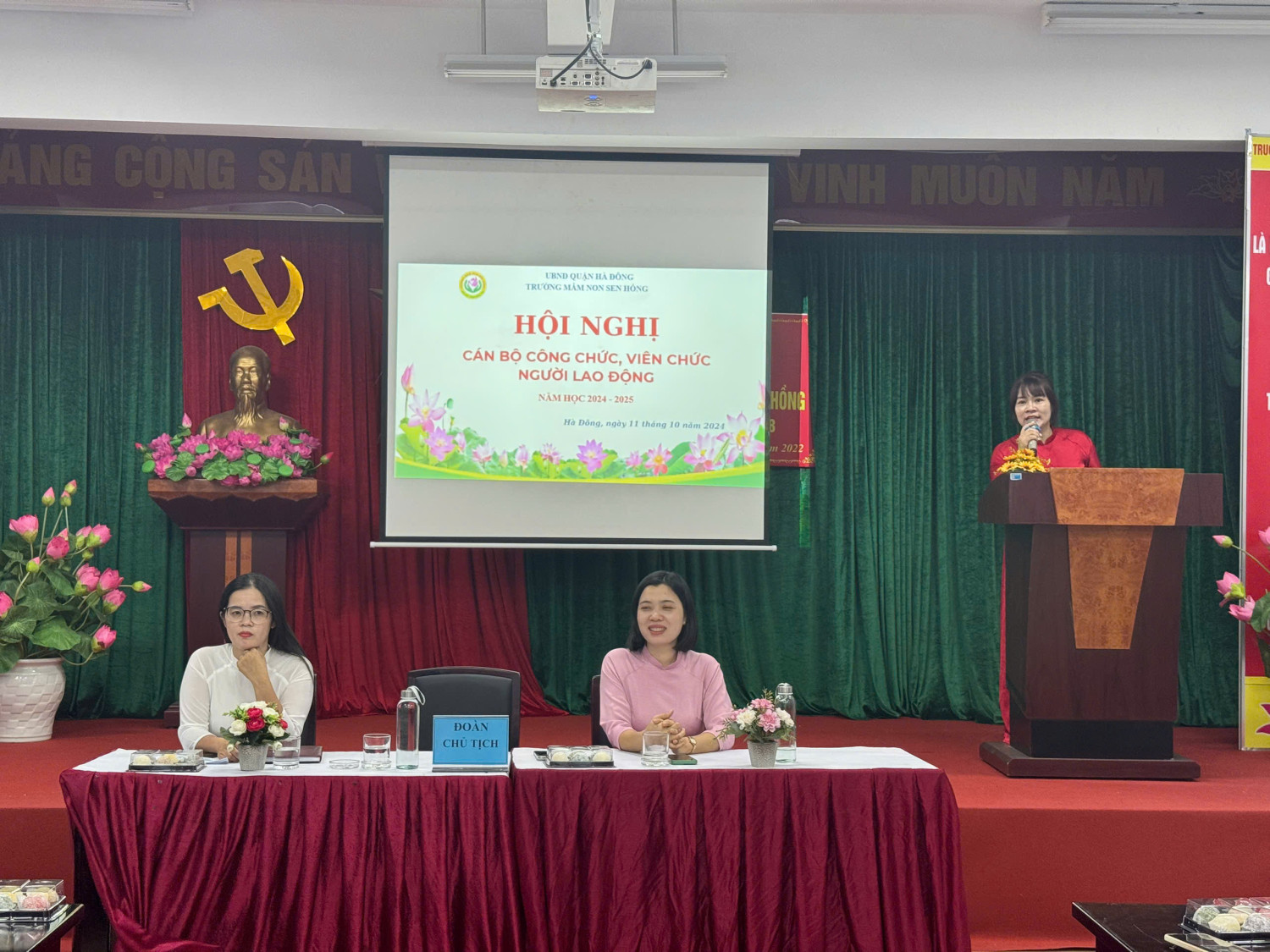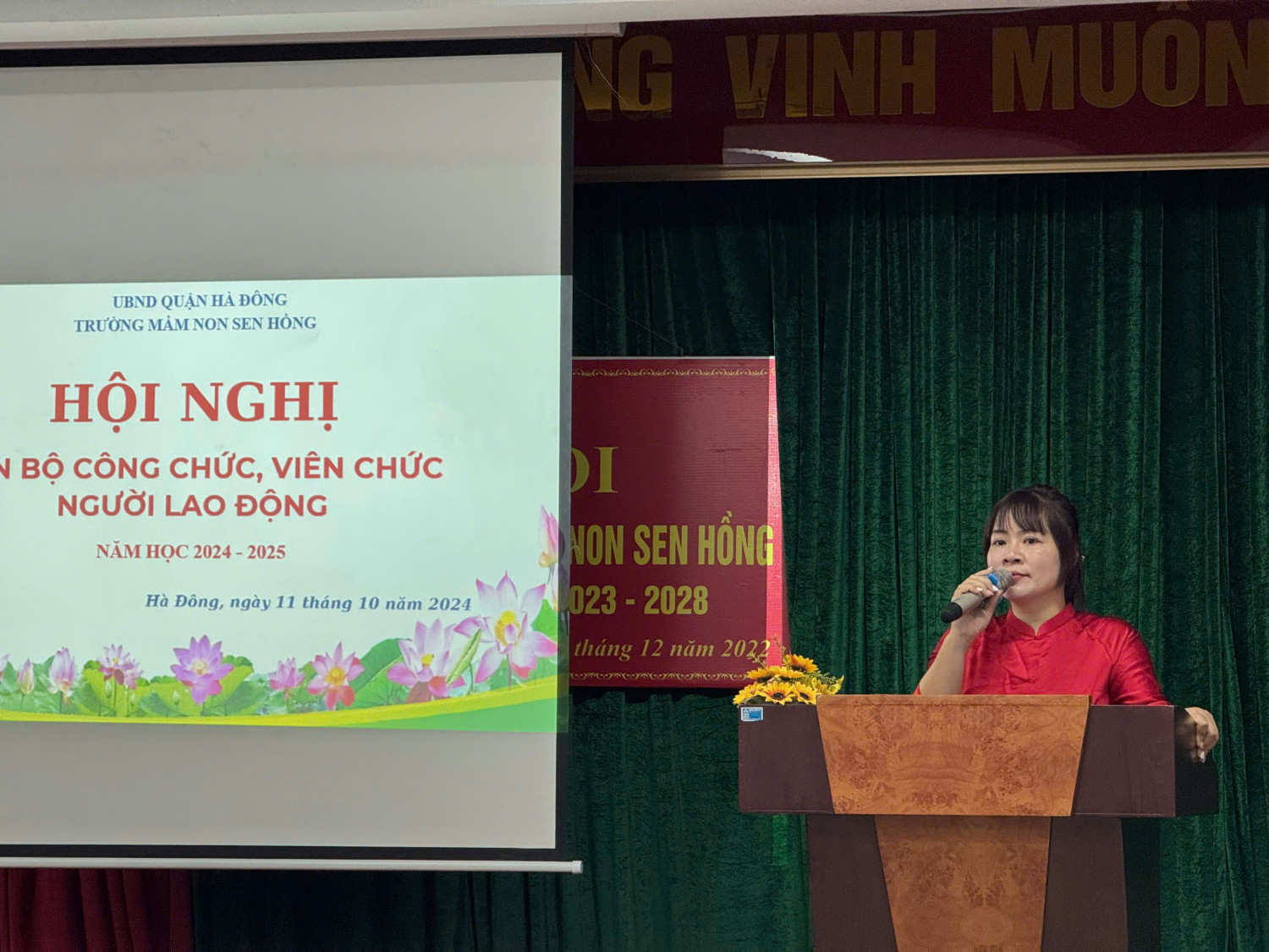 TRƯỜNG MN SEN HỒNG TỔ CHỨC THÀNH CÔNG HỘI NGHỊ CÁN BỘ, VIÊN CHỨC, NGƯỜI LAO ĐỘNG NĂM HỌC 2024-2025