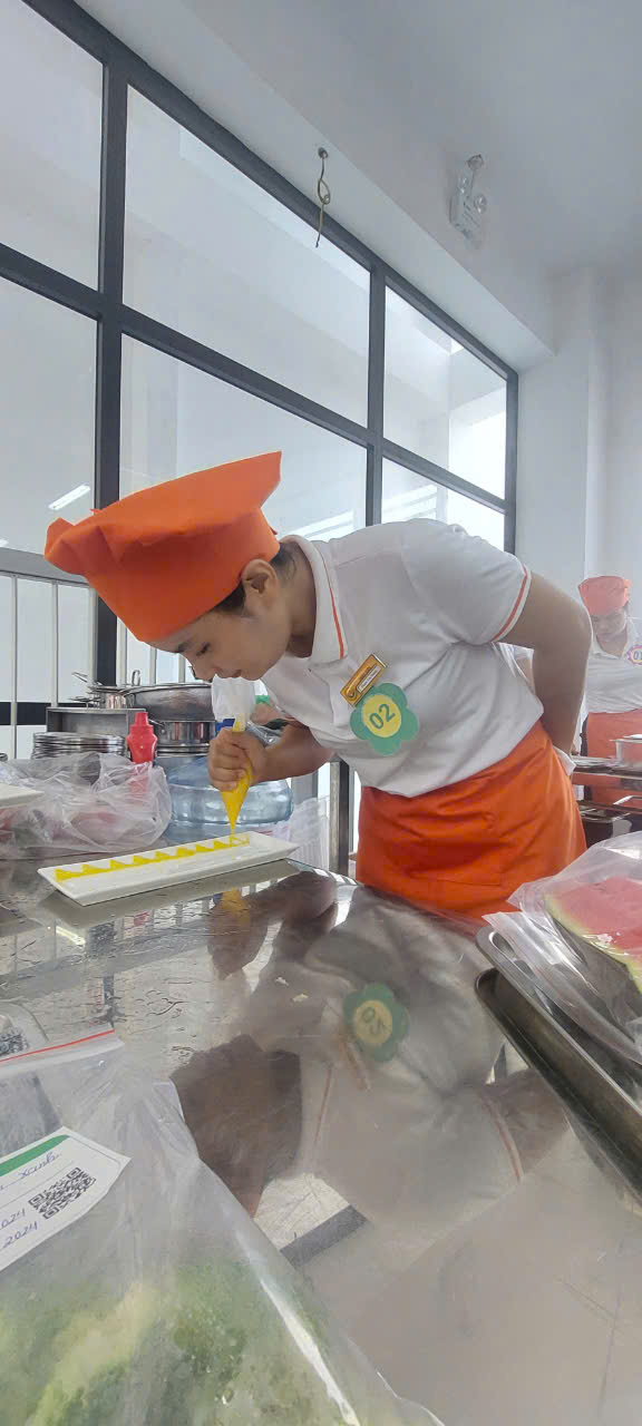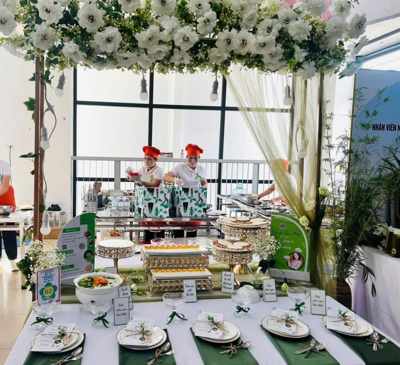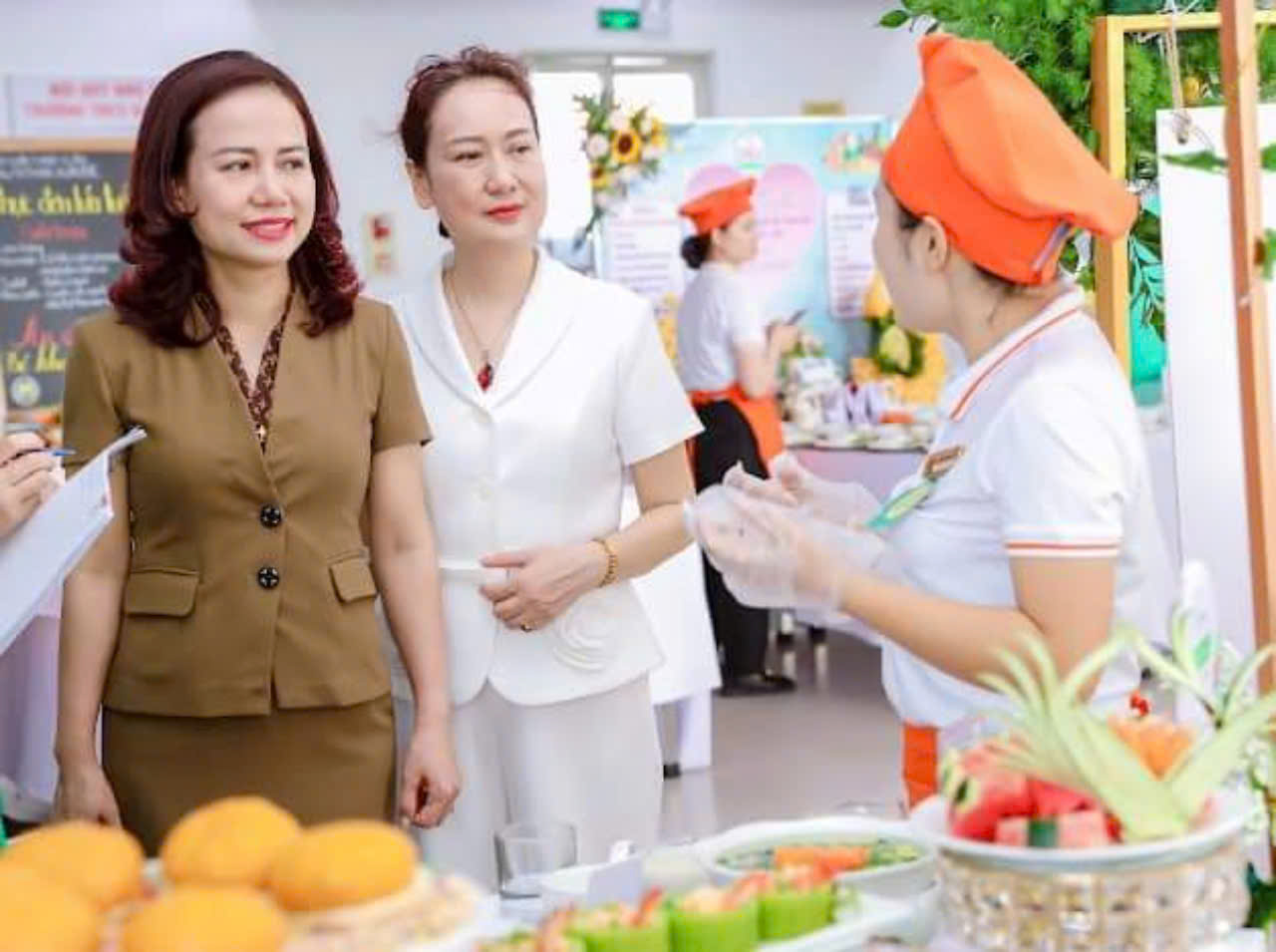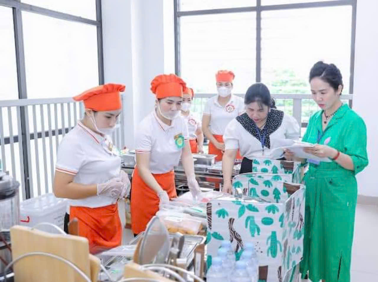 Hai nhân viên Phạm Thị Dung và Nguyễn Thị Xuyến tham gia dự thi thực đơn với chủ đề “Bếp nhà Sen Hồng - Trọn vị yêu thương” dành cho lứa tuổi Nhà trẻ 24-36 tháng. Trong thời gian 90 phút với sự phối hợp nhuần nhuyễn, sắp xếp khoa học, kỹ năng thuần thục, hai cô đã hoàn thành từ khâu chế biến ban đầu, hoàn thành sản phẩm và bầy trí đẹp mắt mang những món ăn ngon, đủ dinh dưỡng và hấp dẫn.