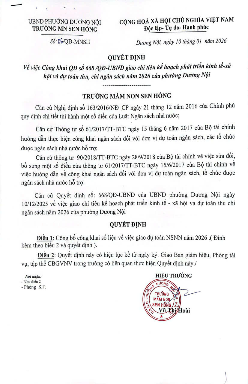 Quyết định về việc giao chỉ tiêu dự toán thu, chi ngân sách 2026 của phường Dương Nội