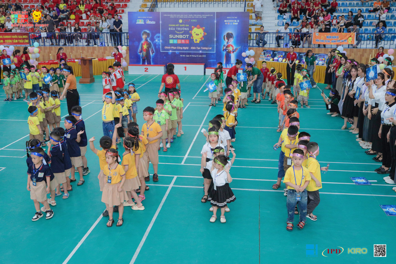 CHINH PHỤC CÔNG NGHỆ - KIẾN TẠO TƯƠNG LAI CÙNG SUNBOT Thứ 7, ngày 20/4/2024 đánh dấu 1 mùa hè rực rỡ tại Nhà Thi đấu quận Hà Đông, Hà Nội, Chung kết ĐẤU TRƯỜNG SUNBOT cấp Quốc gia 2024 Ngày hội STEAM & Robotics mầm non lớn nhất Việt Nam - chủ đề “Chinh Phục Công Nghệ - Kiến Tạo Tương Lai” đã diễn ra thành công. Sự kiện này không chỉ là nơi quy tụ 24 đội tuyển xuất sắc từ hơn 250 Trường mầm non trong hệ thống Trường học thông minh Sunbot toàn quốc, mà còn là dịp để tổng kết một năm học đầy bổ ích và sôi động. Thử thách "Chinh Phục Công Nghệ" đã đưa các bé thể hiện tài năng và sự sáng tạo qua 3 phần thi: Thủ lĩnh sáng chế, Thủ lĩnh trí tuệ, và Siêu thủ lĩnh SUNBOT. Trẻ mầm non thể hiện khả năng lãnh đạo, làm việc nhóm, tư duy giải quyết vấn đề và khả năng sử dụng các thiết bị công nghệ hiệu quả. Các phần thi phản ảnh đầy đủ bộ kỹ năng công dân thế kỷ 21 trong thời đại 4.0. Những bước tiến trong việc áp dụng lập trình tư duy và giáo dục STEAM không chỉ góp phần vào nền giáo dục thông minh của đất nước, mà còn là bước đệm quan trọng cho sự phát triển của trẻ, tiến tới “Kiến Tạo Tương Lai”.