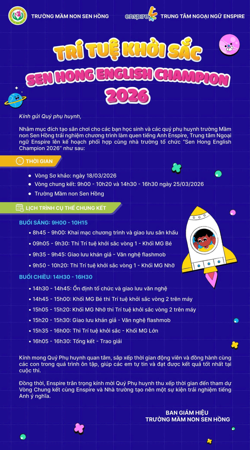 ✨ 🌟 TRI TUE KHOI SAC – SEN HONG ENGLISH CHAMPION 2026