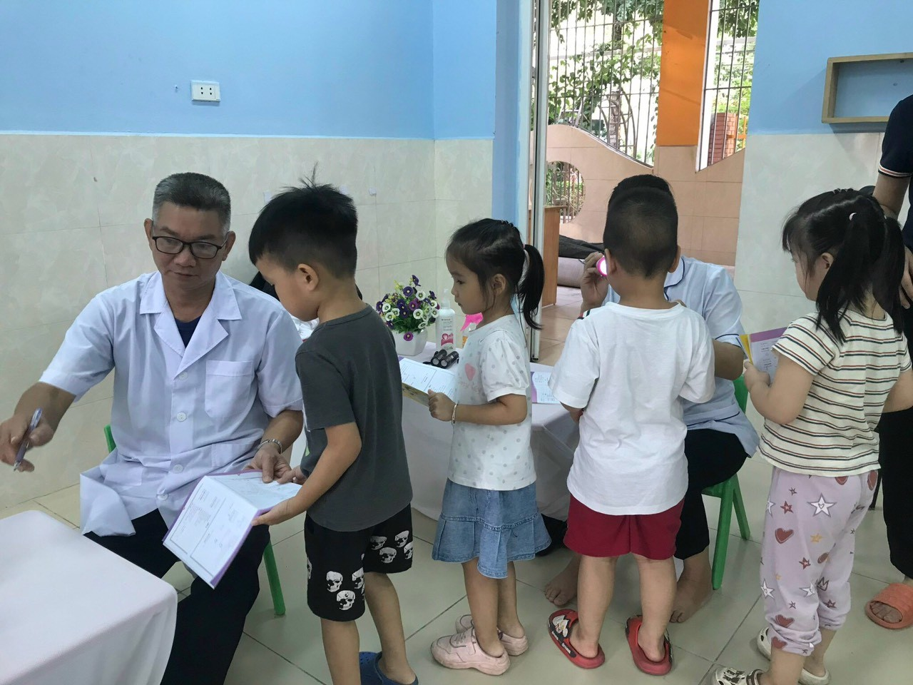Trong lần khám sức khỏe này, các bé đã được đo chiều cao, cân nặng, khám mắt, khám răng hàm mặt và một số hạng mục khác. Tình trạng của mỗi bé cũng được các bác sĩ ghi lại trong sổ theo dõi sức khỏe.