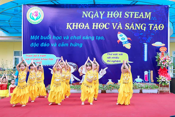 NGÀY HỘI STEAM, KHOA HỌC VÀ SÁNG TẠO STEAM LÀ GÌ???? Là 1 trong những phương pháp giáo dục tiên tiến nhất hiện nay, nó là sự kết hợp giữa các lĩnh vực như: KHOA HỌC- CÔNG NGHỆ- KỸ THUẬT- TOÁN HỌC- MỸ THUẬT. Nó giúp cho người học có được những kiến thức một cách toàn diện nhất. PP STEAM GIÚP ÍCH GÌ CHO HỌC SINH??? Phương pháp STEAM giúp hình thành cho trẻ đầy đủ những kỹ năng số cho công dân số (thời đại 4.0): + Kỹ năng tiếng anh (English Skill) + Tư duy máy tính (Computatinal Thinking)… +Tư duy phản biện (Critical thinking)… + Kỹ năng sáng tạo (Creative Skill)… + Kỹ năng giao tiếp (Communication Skills)… + Kỹ năng hợp tác (Collaboration Skills) STEAM TẠI MN SEN HỒNG ỨNG DỤNG NHƯ THẾ NÀO??? + Dạy học bằng dự án. + Học qua trải nghiệm thực tế. +Thực hành các thí nghiệm từ sớm. + Phát triển tư duy số cho trẻ. + Khơi dậy tiềm năng nghệ thuật cho trẻ. Ngày hội STEAM diễn ra vào thứ 6 ngày 23/4/2021 tại Sen Hồng với 5 trạm trải nghiệm: Trạm trải nghiệm Khoa học, trạm trải nghiệm Kỹ thuật, trạm trải nghiệm Công nghệ, trạm trải nghiệm Nghệ thuật và trạm trải nghiệm Toán học với rất nhiều thiws nghiệm, bài tập như: Núi lửa phun trào, Lốc xoáy mini, Lá phổi, Đài phun nước mini, Máy lọc nước, Thổi bong bóng trong chai, Bơm tên lửa, Máy đếm tiền xu, Xe tăng, Máy bơm nước cầm tay, Máy thả hạt đồ chơi, bàn tay robot, Đèn pin, Lắp ghép robot, lego, ô tô… đã trở thành sân chơi trải nghiệm đầy thú vị và đam mê với các bạn nhỏ. Ngày hội đã diễn ra thành công tốt đẹp với sự tham gia cuồng nhiệt của các bạn nhỏ. Sự hợp sức của các bậc phụ huynh. Sự chia sẻ của bạn bè đồng nghiệp. Xin chân thành cảm ơn tất cả đã tạo nên một buổi trải nghiệm tuyệt vời cho các con Chúng tôi tin rằng đây là hành trang tốt nhất để trẻ thích ứng và phát triển trong kỉ nguyên công nghệ 4.0 này.
