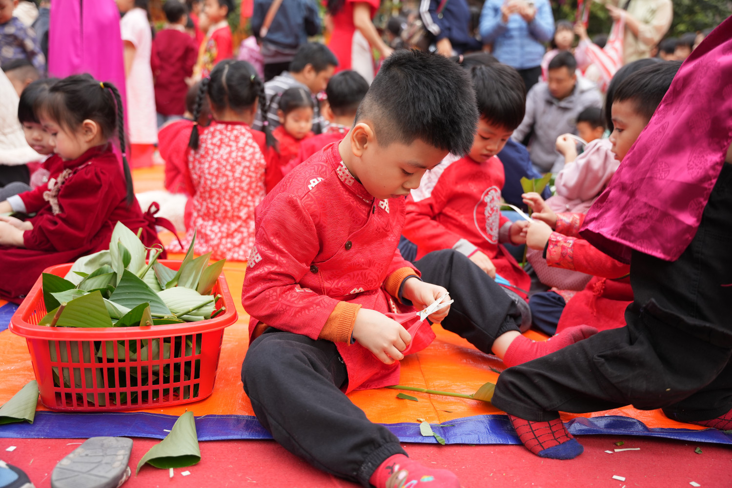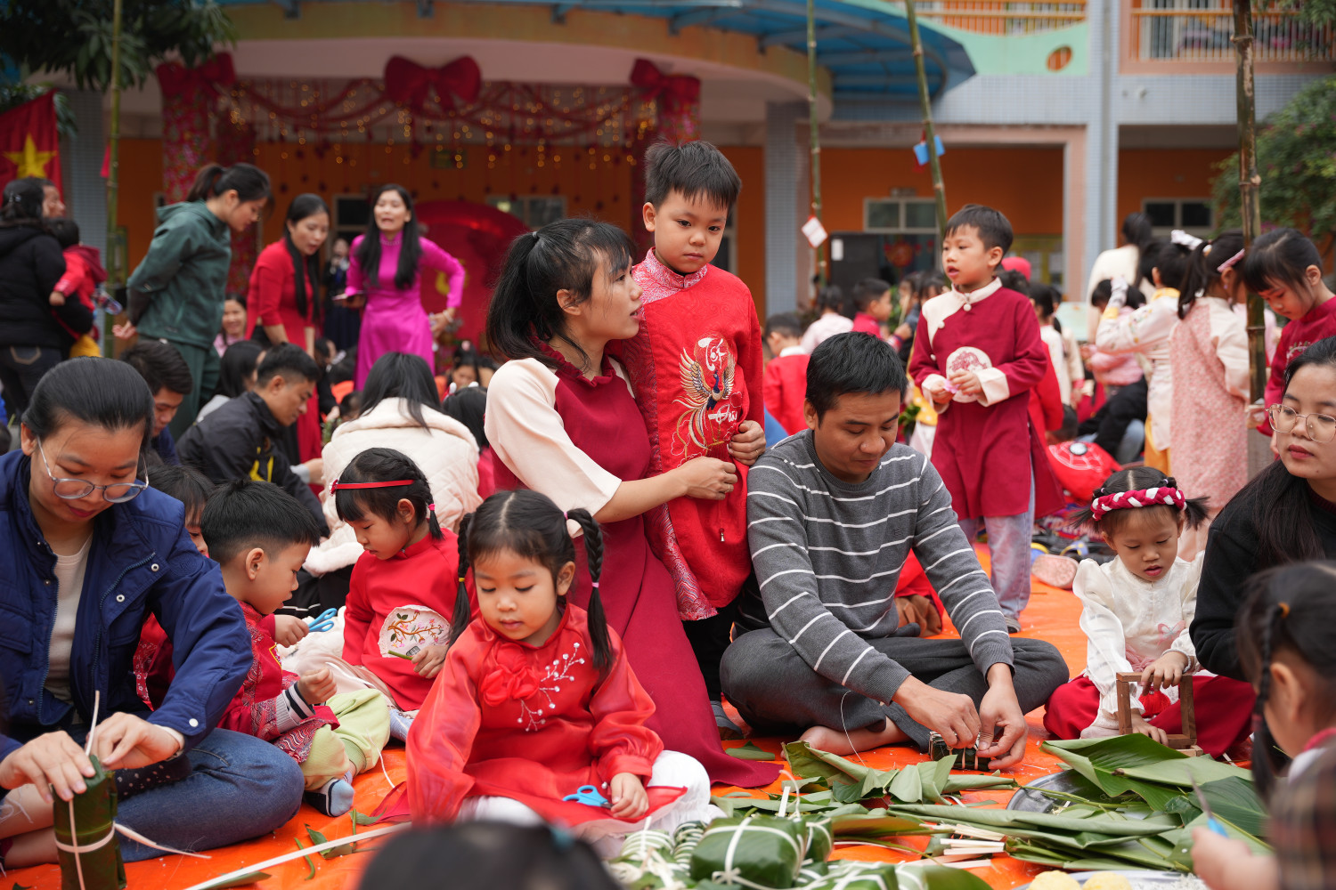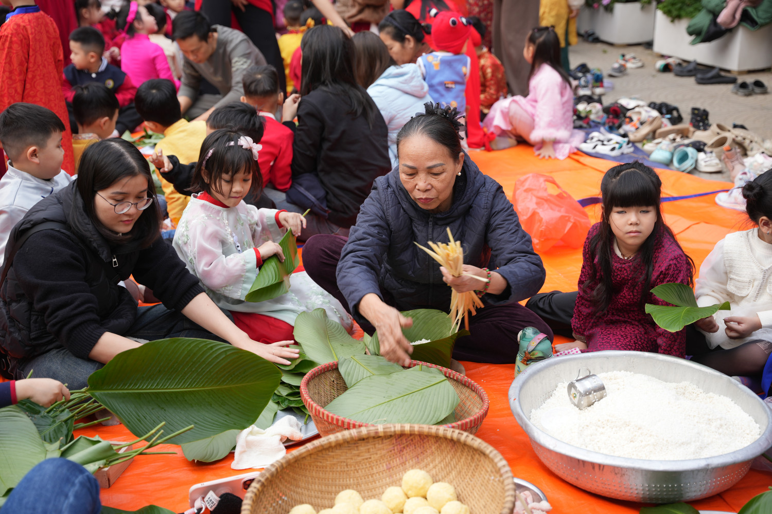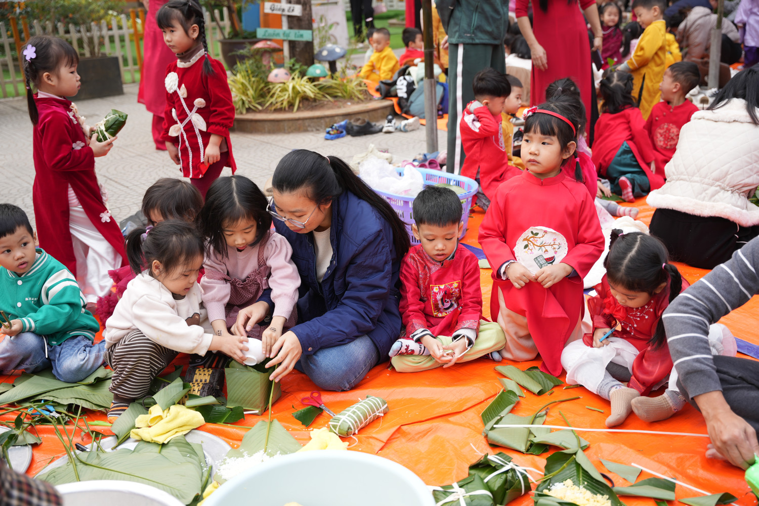 Ai bảo Tết là chỉ có bánh mứt, xem ngay tại trường Sen Hồng mà học cách gói Tết bằng niềm vui, tiếng cười và… rất nhiều lá dong!