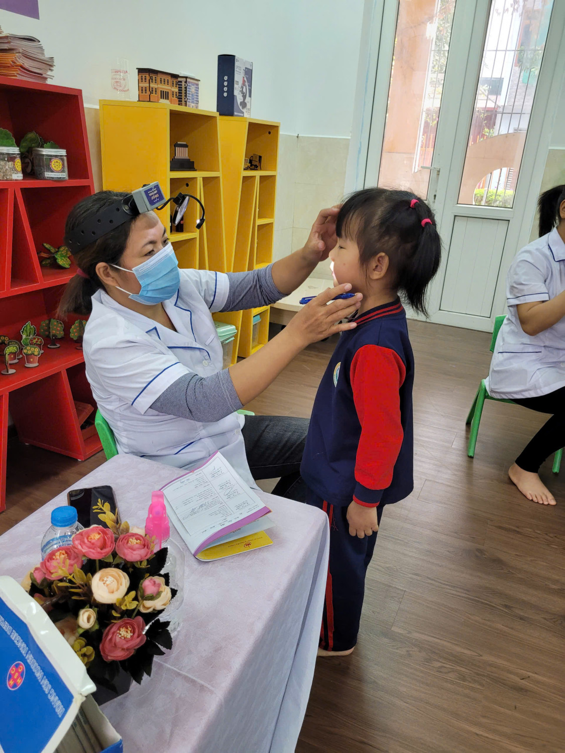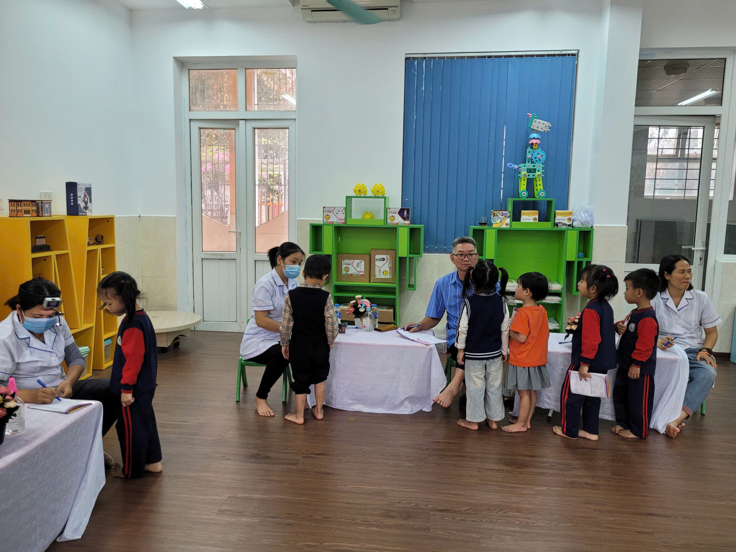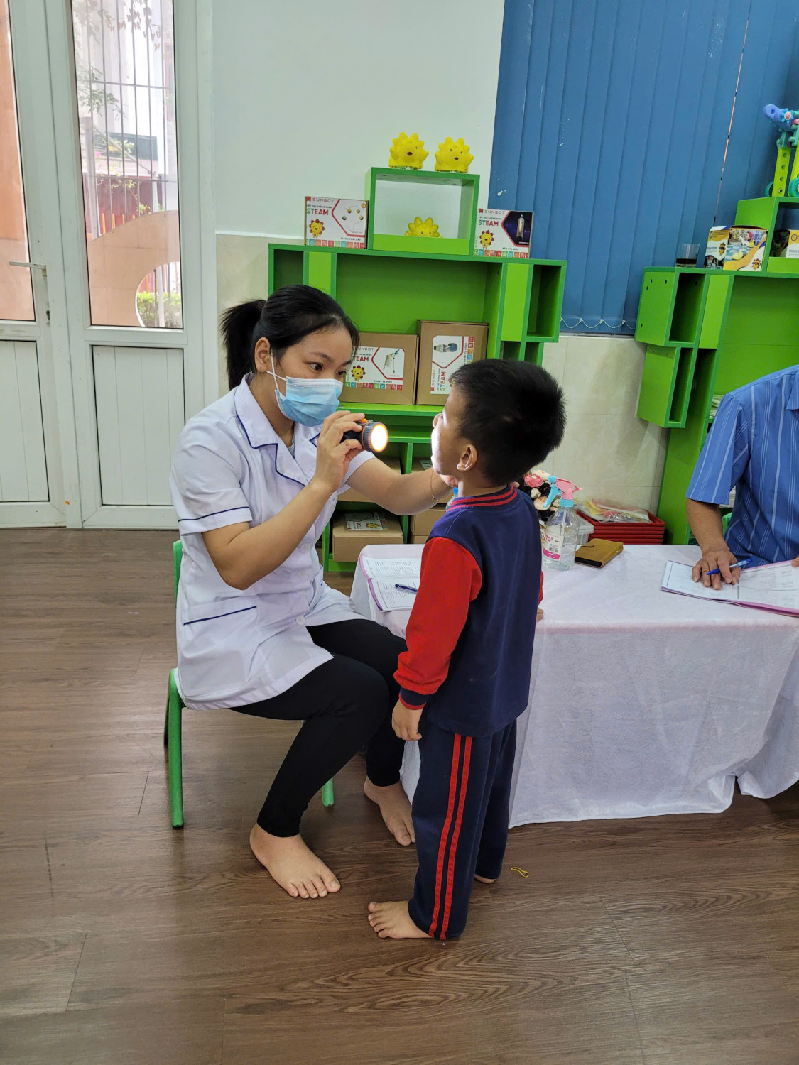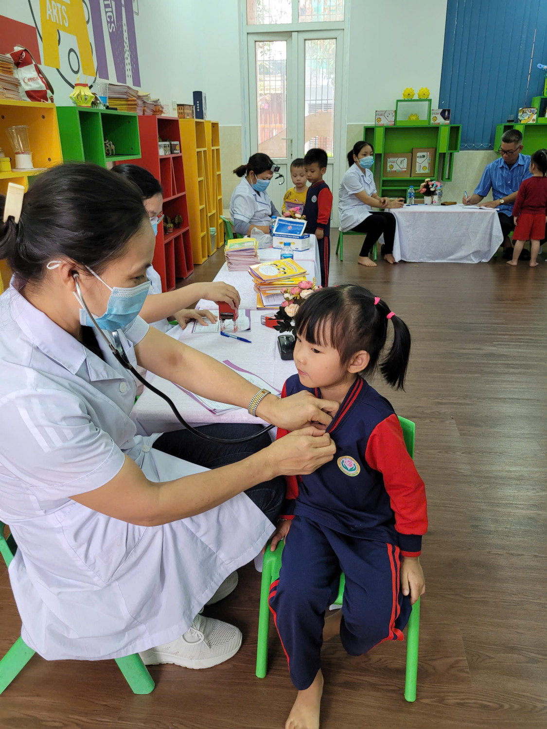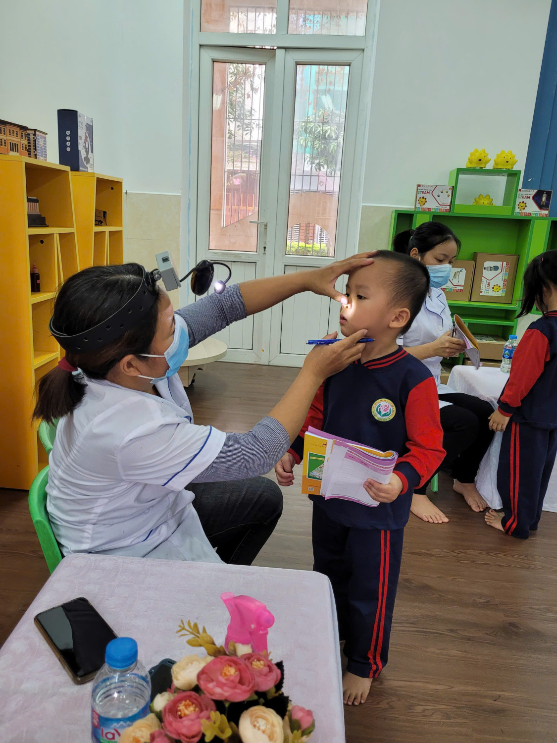 Với phương châm “Trẻ khỏe mạnh - giáo viên hạnh phúc - phụ huynh tin yêu”, việc khám sức khỏe định kỳ cho trẻ được xem như một biện pháp tích cực, trẻ được đánh giá tổng quát về thể lực cũng như sự tăng trưởng của cơ thể như: Cân nặng, chiều cao, thị lực, thính giác, răng hàm mặt, tai mũi họng, khả năng vận động và hô hấp.